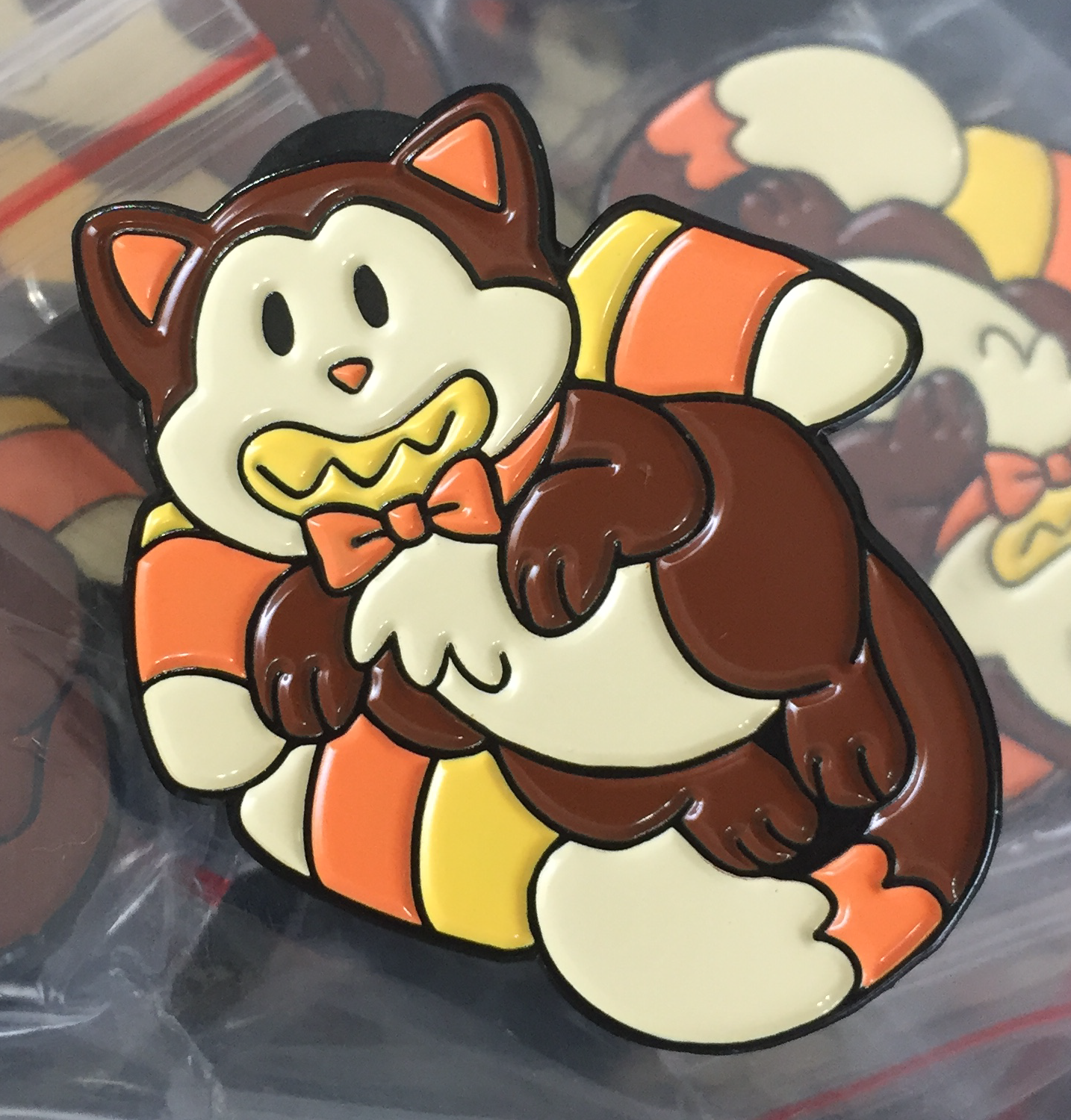 This 1.5 inch enamel pin comes equipped with two metal fasteners for extra security and adjustability.