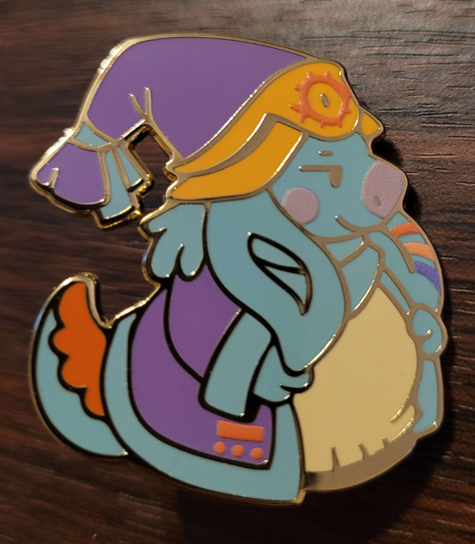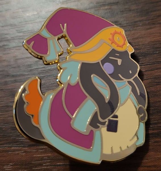 This 1.5 inch enamel pin comes equipped with two metal fasteners for extra security and adjustability.