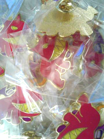 This charm is gold hard enamel and about 3.5cm (1.37 inches) in length. It has a single gold butterfly clasp on the back.