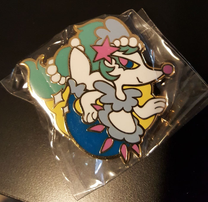 This enamel pin is around 1.5 inches and comes equipped with two metal fasteners for extra security and adjustability.